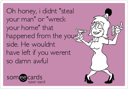 Oh honey, i didnt “steal your man” or “wreck your home” that