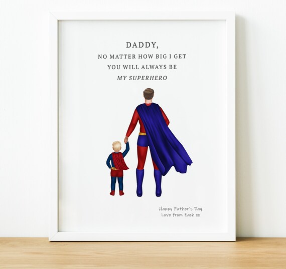 Personalised Superhero Daddy & Child Print, Unique Fathers Day