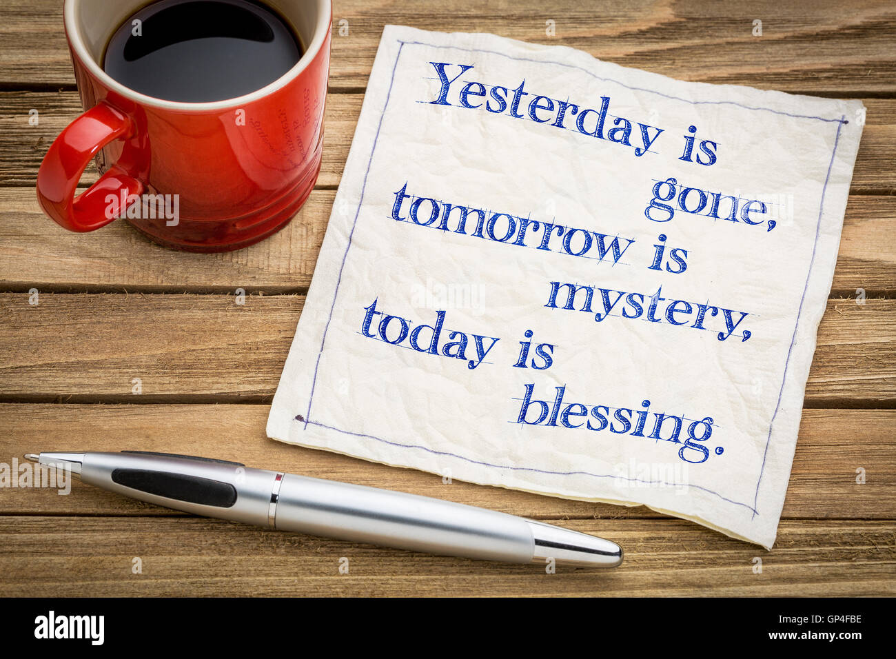 Yesterday is gone, tomorrow is a mystery, today is a blessing